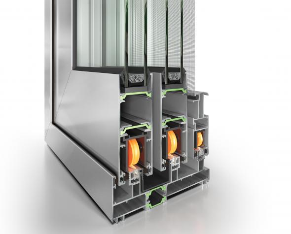 Στιβαρή και κομψή λύση συστημάτων αλουμινίου με ένα ιδιαιτέρως επιτυχημένο θερμομονωτικό σύστημα. Πάχος υάλωσης έως 28mm και δυνατότητα ολίσθησης έως 200kg ανά φύλλο. Μεγάλη ποικιλία τυπολογιών είναι διαθέσιμη, όπως συρόμενου με σίτα και παντζούρι.